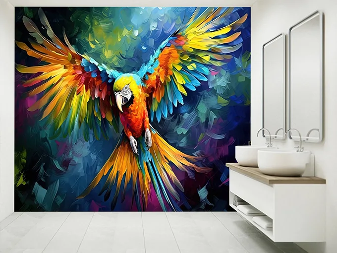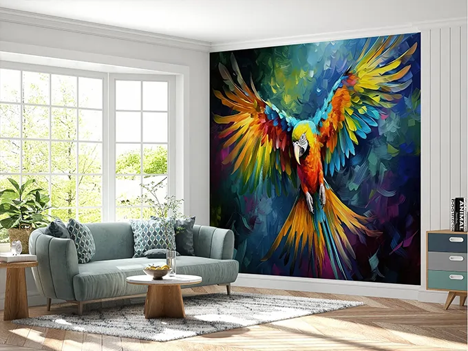 Enliven your interior with the Colorful Parrot Wall Mural Wallpaper. Let your walls burst with vivid hues, joyful movement, and lush natural beauty.