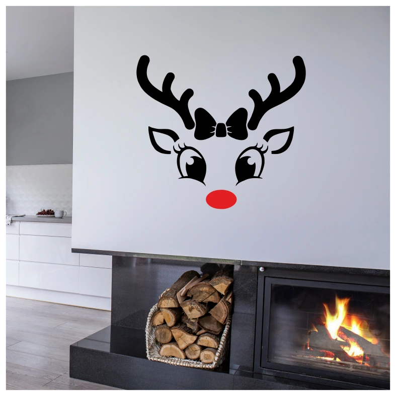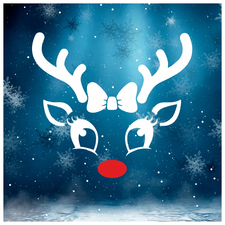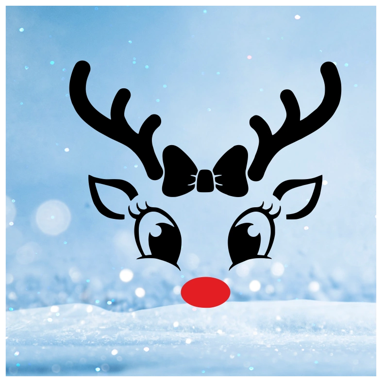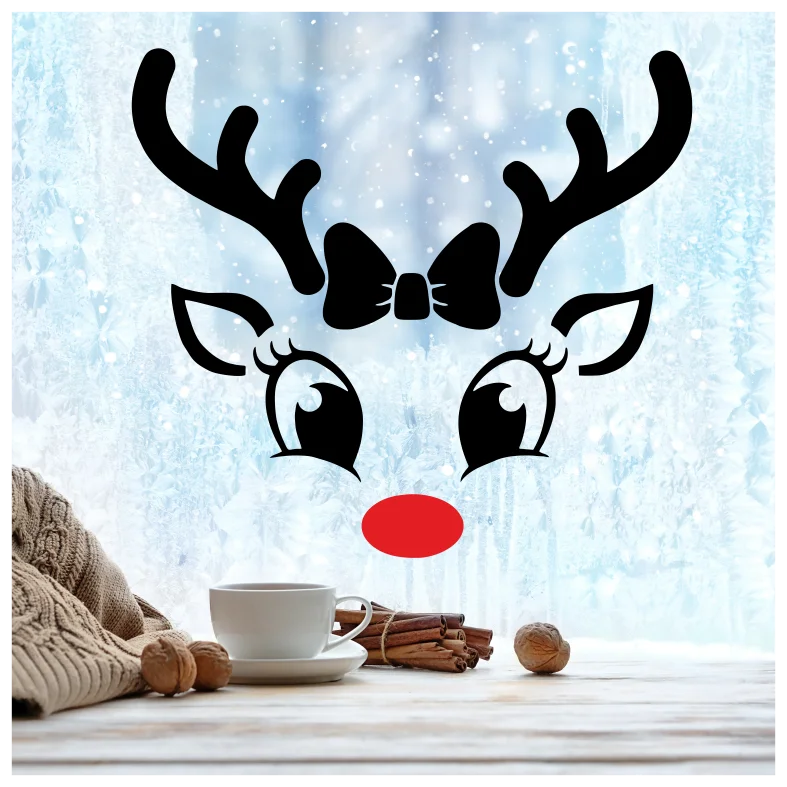 The decal beautifully highlights the gentle features of the reindeer girl — expressive eyes, soft curves, and a red nose that adds extra holiday charm. Subtle feminine touches make the character even more endearing, while the contur-cut shape ensures crisp edges and a clean, professional-looking finish on any smooth surface.