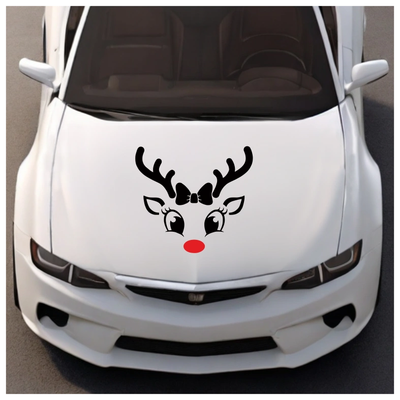 The Cute Reindeer Girl Car Sticker Decal is an adorable contur-cut winter decal featuring the sweet face of a charming reindeer girl with a bright red nose. This delightful design instantly adds a cheerful, heartwarming holiday touch to any car, spreading festive vibes everywhere you go. Its friendly expression makes it a perfect seasonal accent for drivers who love playful and uplifting decorations.