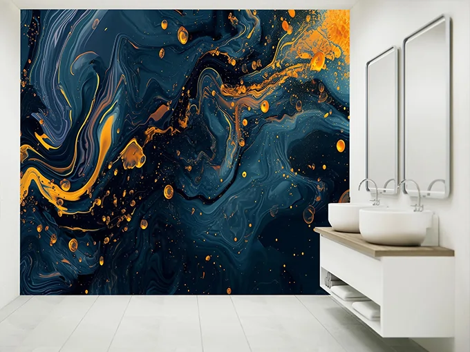 Designed for those who appreciate artistic modernity, the Dark Blue Marble Mural fits seamlessly with a wide variety of décor styles. It pairs beautifully with gold or brass accents, dark wood, minimalist furnishings, metallic décor, and dramatic lighting. Whether your interior leans modern, elegant, or glam, this mural serves as an unforgettable focal point that ties the entire room together.