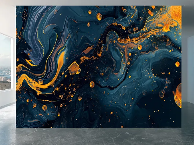 The Dark Blue Marble Mural masterfully combines darkness and brightness—rich blue tones convey calm and depth, while vibrant yellow veins add brilliance, warmth, and dynamic character. The interplay of these elements creates a stunning visual impact, making the mural feel alive with motion and texture. Ideal for living rooms, bedrooms, offices, or creative spaces, it enhances interiors with bold beauty and polished style.