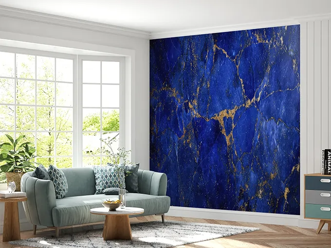 Whether your interior leans minimalist, modern, or glam, the Deep Blue Marble Mural serves as a stunning focal point. Its cool tones pair beautifully with metallic accents, warm lighting, velvet furnishings, or clean architectural lines. The mural enhances both spacious rooms and cozy corners, harmonizing with neutral décor while adding a strong design statement.