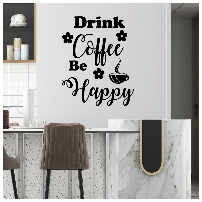 Designed to Last: Made from durable vinyl, the Drink Coffee Be Happy Quote Wall Decal is built to withstand the daily hustle and bustle of your kitchen. It resists fading and peeling, ensuring that its vibrant message remains a fixture in your home for years to come. StickThat is committed to delivering products that are as enduring as they are beautiful, making this decal a lasting addition to your home decor.