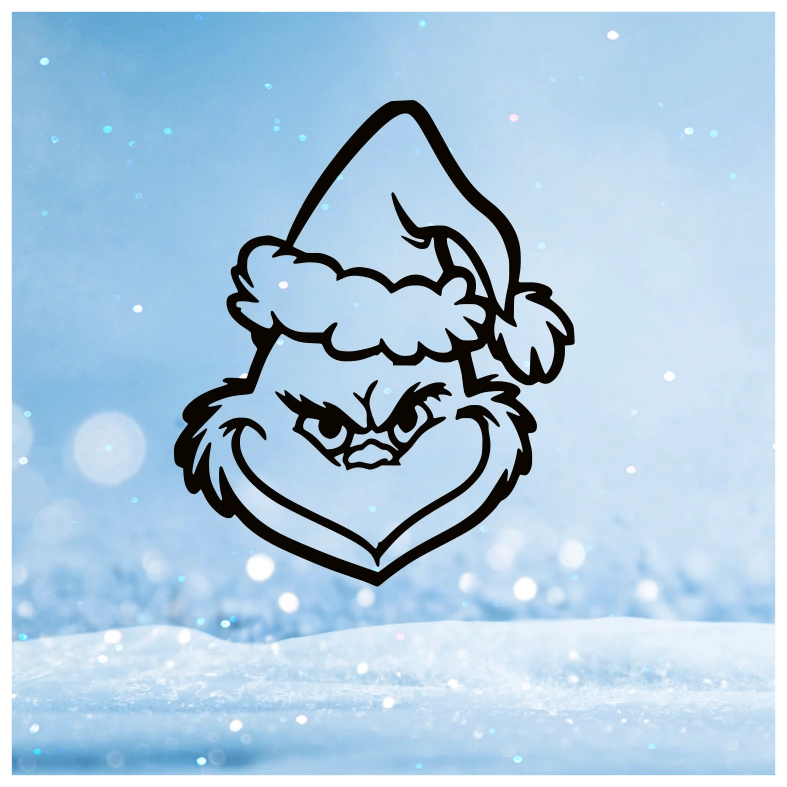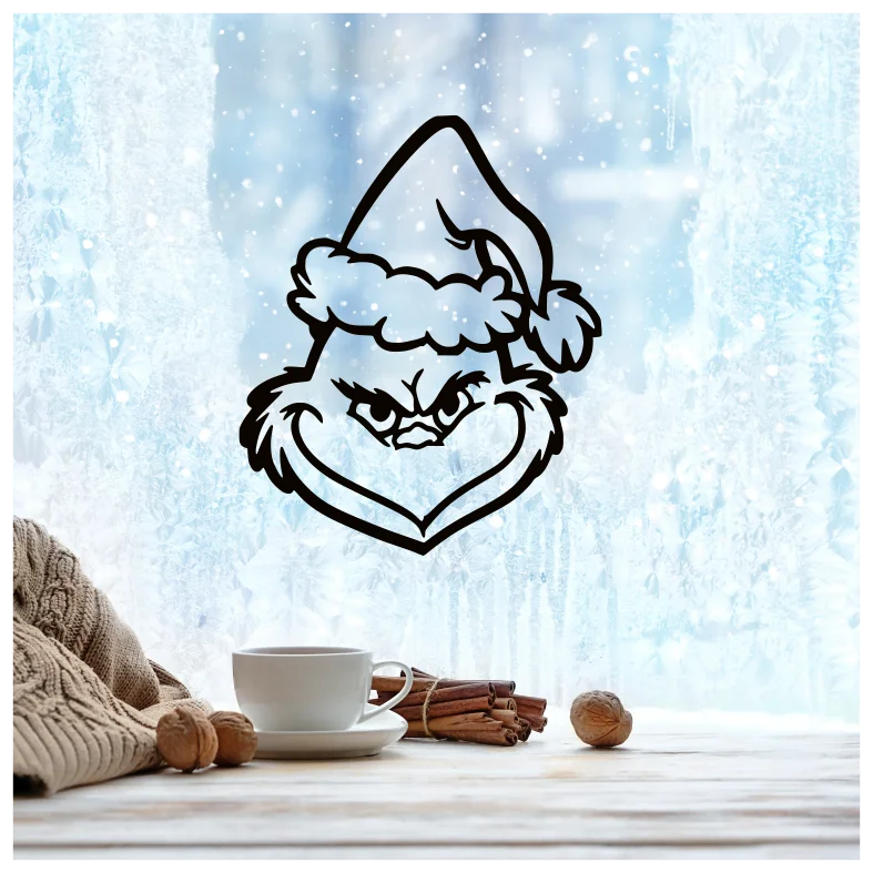 The Grinch with Hat Wall Sticker is a charming contur-cut decal designed to bring a humorous twist to your winter décor. Featuring the unmistakable face of the Grinch wearing a classic Santa hat, this decal captures the mischievous spirit of a character famous for disliking Christmas — and yet endlessly beloved for his quirky charm. Perfect for windows, walls, and smooth surfaces, it brings a fun and memorable touch to your holiday decorations. Whether used in living rooms, children’s rooms, storefront windows, or festive displays, this sticker instantly becomes an eye-catching highlight that adds humor, personality, and a dose of playful holiday mischief.
