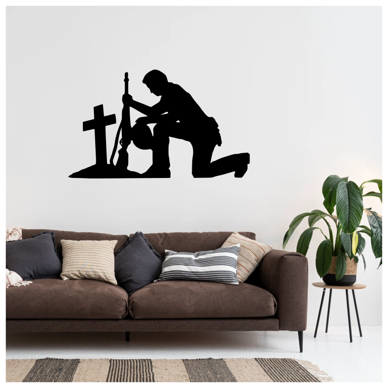 This wall decal is designed with premium, high-quality vinyl that ensures its durability while maintaining sharp, crisp detailing of the kneeling soldier and grave. It’s built to withstand the test of time, offering a lasting tribute that doesn’t fade or peel. The meaningful design stands out in any space, making it an ideal choice for living rooms, memorial areas, or any room that honors military service. This is not just a decoration – it’s a constant reminder of courage, honor, and respect.