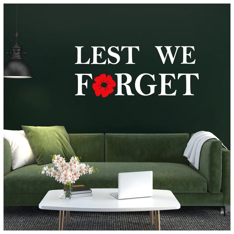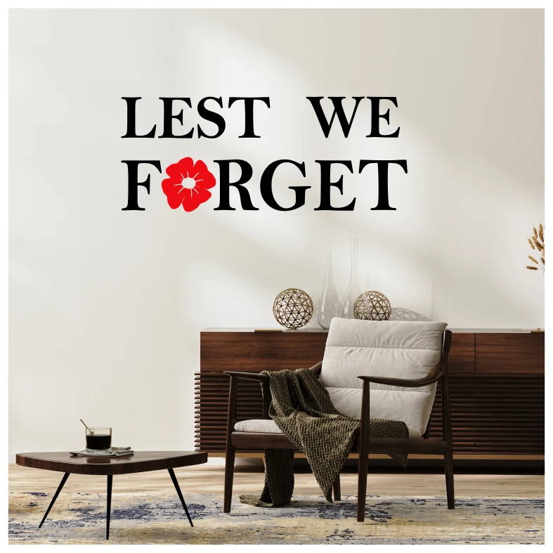 Lest We Forget Poppy Quote Wall Decal is a timeless tribute to the heroes who have served and sacrificed. Featuring the poignant phrase “Lest We Forget” and adorned with vibrant red poppies, this wall decal beautifully symbolizes remembrance and respect. Whether you’re looking to honor loved ones, veterans, or simply pay tribute to those who have served, this decal serves as a lasting reminder of their courage and dedication.