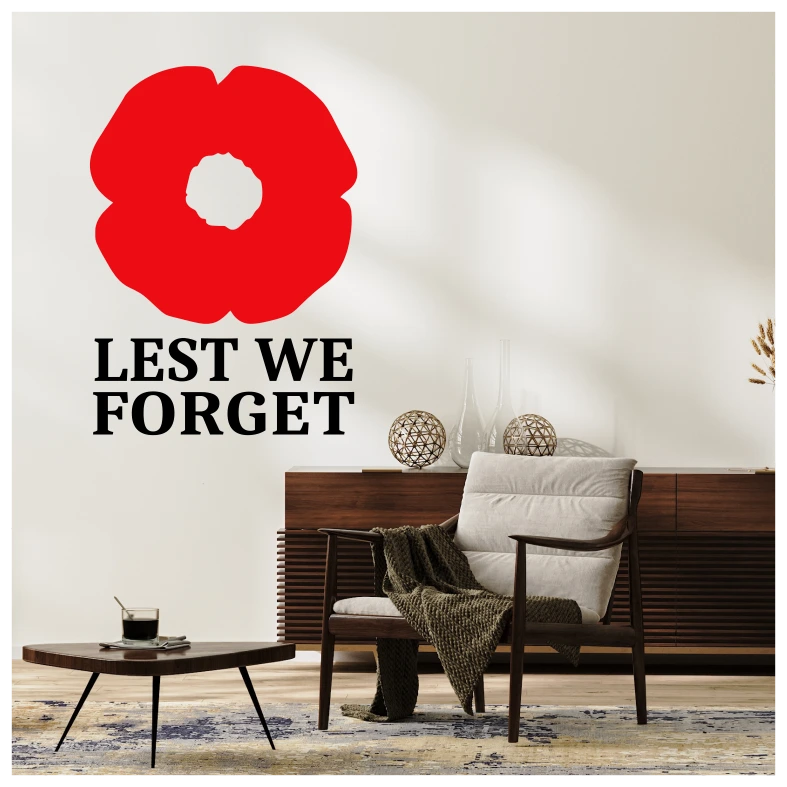 At Stick That, we create designs that combine art, respect, and timeless meaning. The Lest We Forget Poppy Wall Sticker is more than a decoration — it’s a tribute to bravery, memory, and peace. Its elegant simplicity makes it suitable for both private and public spaces, serving as a daily reminder of gratitude and honor.