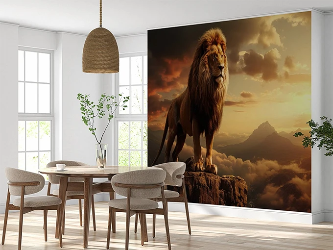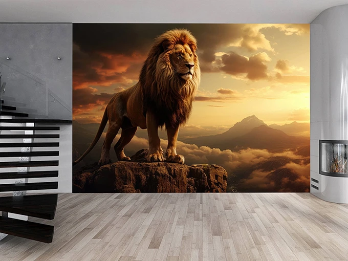 Designed for rooms that embrace strong visuals and natural ambiance, the Majestic Lion Wallpaper pairs beautifully with wooden furniture, warm textiles, neutral tones, and rustic or safari-inspired décor. Whether you’re creating a bold feature wall or a themed bedroom retreat, this mural becomes the focal point that elevates the entire space. It blends effortlessly with both modern and earthy interior styles.