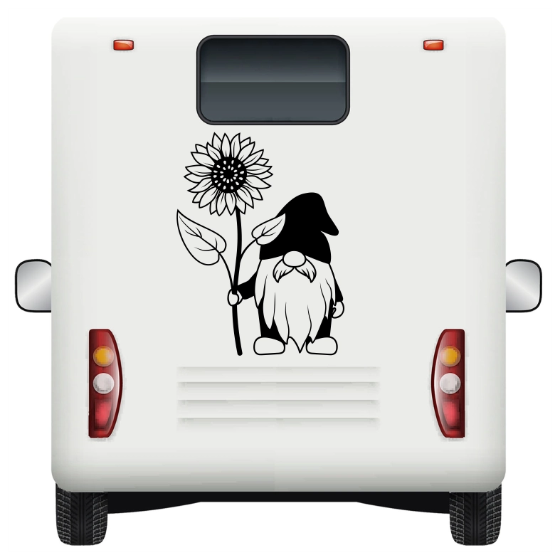 Vivid and Unique Design: The decal showcases a cheerful gnome surrounded by vibrant sunflowers, creating a lively and captivating design. The detailed artwork and bright colors make this car decal truly stand out, catching the eye of everyone who passes by. It’s an easy way to make your car unique and reflect your fun-loving spirit.