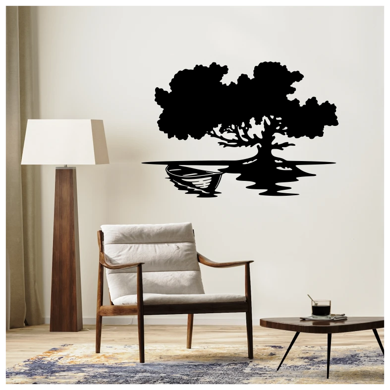 Easy Application and Removal: Applying this “Tree Boat Wall Decal” is simple and hassle-free. Its self-adhesive design ensures that it can be smoothly applied without bubbles on any flat surface, and when it’s time for a change, it can be removed without leaving behind any sticky residue or damaging the wall.