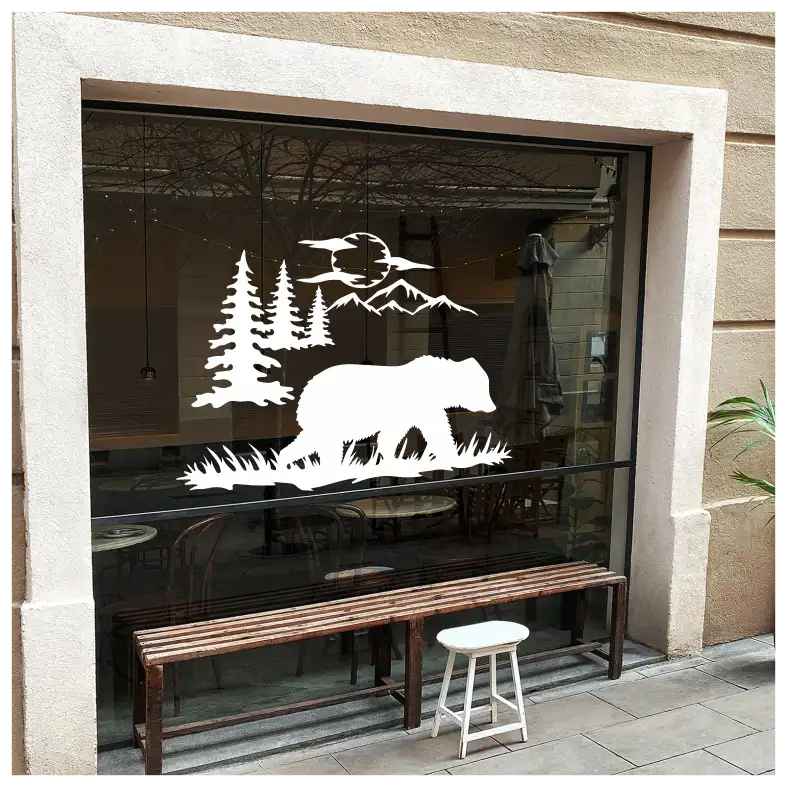 The Wildlife Bear Wall Sticker is precision-cut from high-quality, single-color vinyl to ensure sharp lines and a smooth, painted-on effect. A wide range of color options allows you to customize the decal to your interior—classic black for dramatic contrast, earthy tones for a natural look, or lighter shades for a softer visual impact. The matte finish is ideal for wall application, while a glossy option is available for smooth surfaces such as glass, metal, plastic, or sealed wood. With no background material, the design blends seamlessly into any surface.