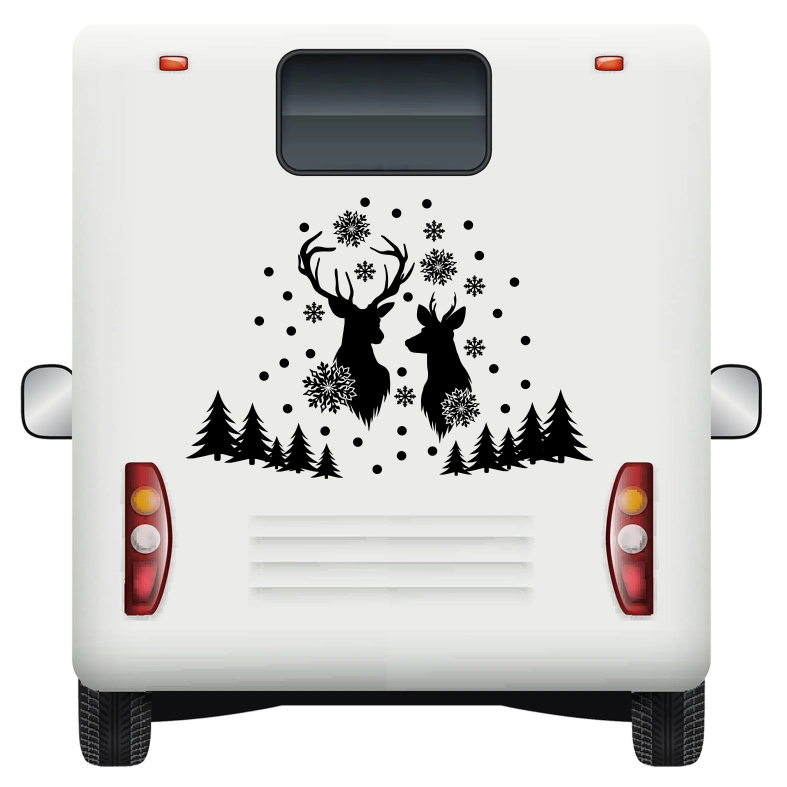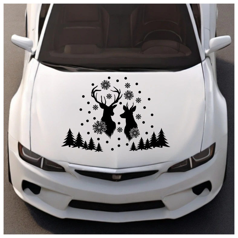The combination of proud reindeers, detailed fir trees, and gently falling snowflakes creates a visually striking winter scene that stands out beautifully on windows and vehicle body panels. Clean lines and a balanced composition give the decal a crisp, elegant appearance suitable for all types of vehicles. Its subtle yet festive style makes it ideal both for holiday decoration and for general wintertime aesthetics that bring joy throughout the season.